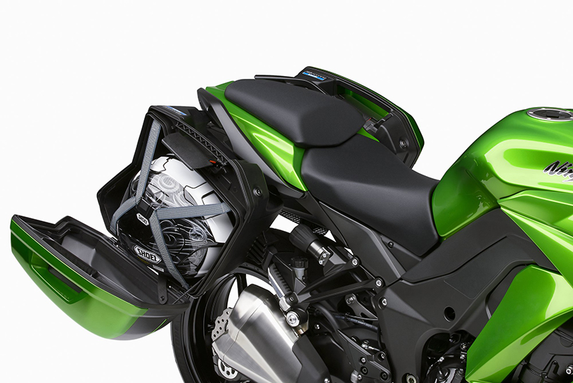 The Ninja 1000 is powered by the same 1,043cc inline-four with DFI. The KTRC Traction Control system in the Ninja 1000 offers three different traction control modes. Add to that selectable power modes which can help cut back power by 50% in tricky situations and you’ll realize the Ninja 1000 might be the most rider friendly litre class machine in India. The Ninja 1000 also gets a taller 6th gear. The hybrid instrument cluster includes a classic analog tachometer and a digital display. The Ninja 100 also gets remote rear spring preload adjuster allowing for quick tuning for passenger and luggage weight. The subframe is new and compatible with Kawasaki’s new accessory saddlebag mounts. The saddlebags though are optional but look great when installed integrating well with the design of the motorcycle. Considering its intent to tour all corners of India, the Ninja 1000 has an adjustable windscreen that has three positions.