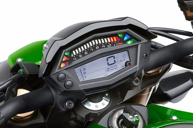 The Z series of Kawasaki motorcycles embrace the ‘Sugomi’ philosophy, which embraces adjectives like awesome, imposing, exuding presence and awe inspiring when developing not just the design of the motorcycles but also the engine character and chassis response. The Z1000 uses an upgraded 1,043cc inline-four with DFI. Suspension up front is taken care of by Showa’s latest – Showa Separate Function: Big Piston Fork (SFF-BP) that is light weight and easily adjustable. The Kawasaki logo on the “monobloc” radial-mount front brake caliper is laser etched for bragging rights and wears a black alumite finish. The new six spoke aluminium alloy wheels save nearly 3.3 pounds. The gearing has been modified for a shorter final-drive gearing and a taller 6th gear to help you cruise the highway comfortably. The subframe has also been designed to accommodate the slender, short menacing stance of the motorcycle. The fully digital instrument cluster is also new, and we’ve always loved Kawasaki’s wacky tacho on these new models.