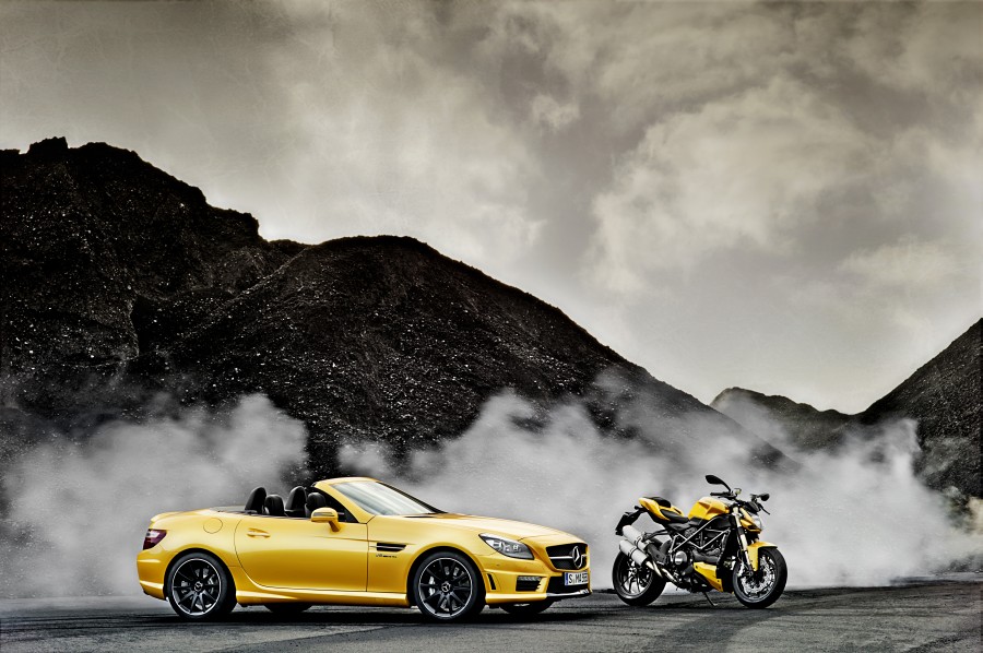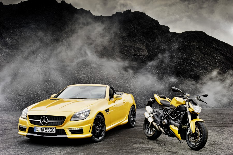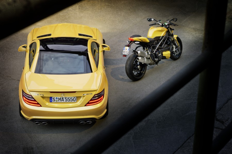 ‘Streetfighter Yellow’ Mercedes-Benz SLK 55 AMG and Ducati Streetfighter 848 at the Bologna Motor Show